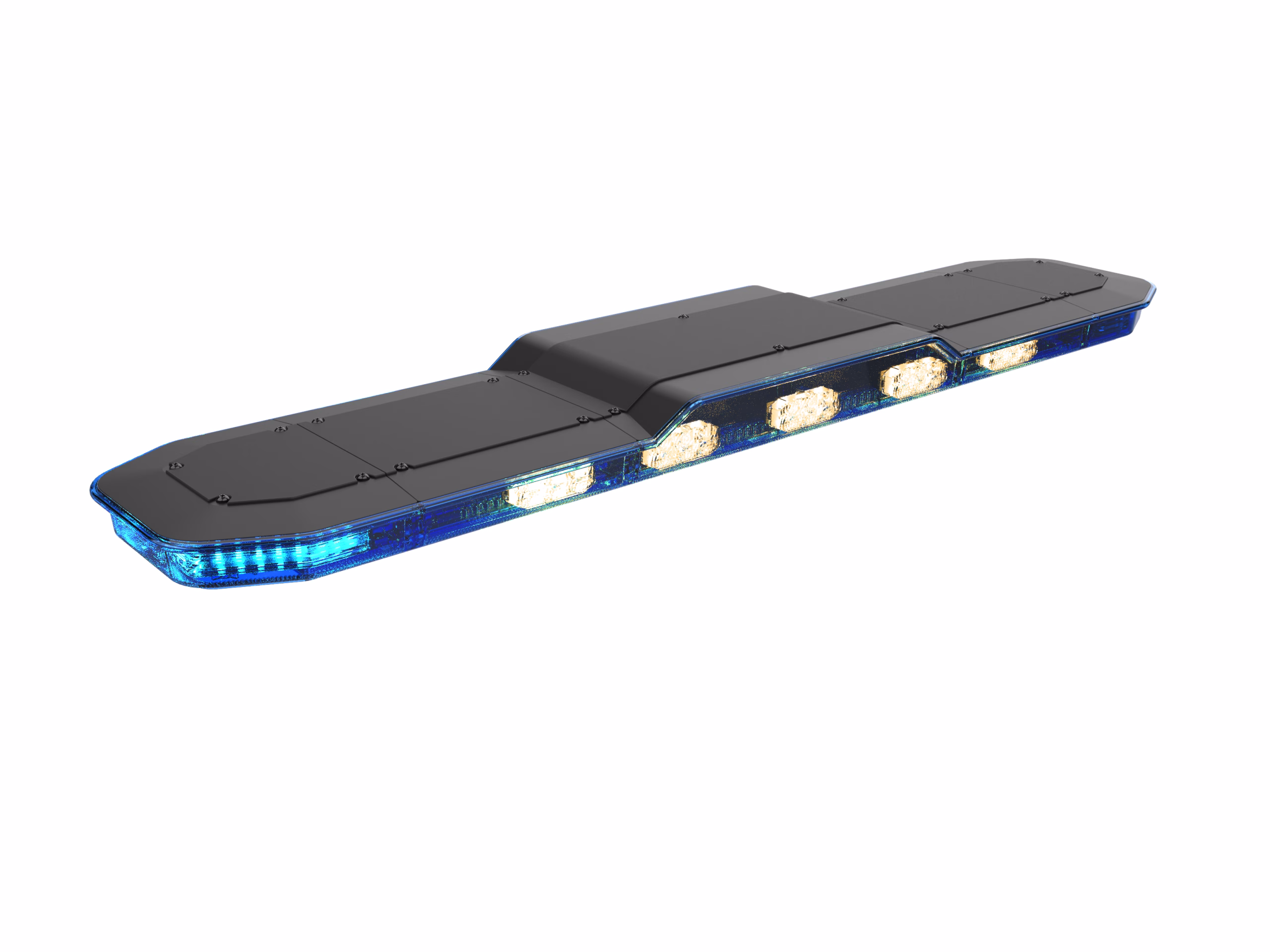 Équipée de feux bleus à éclats R65 Classe 2 et de feux de balisage arrière orange, la rampe assure une signalisation intense et parfaitement adaptée aux situations d’urgence. Elle intègre aussi deux projecteurs latéraux, un mode jour/nuit, ainsi qu’une sirène Police et un système Public Address pour maximiser l’efficacité opérationnelle. Grâce à sa communication multiplexée CAN Automobile, elle s’adapte facilement aux équipements modernes.